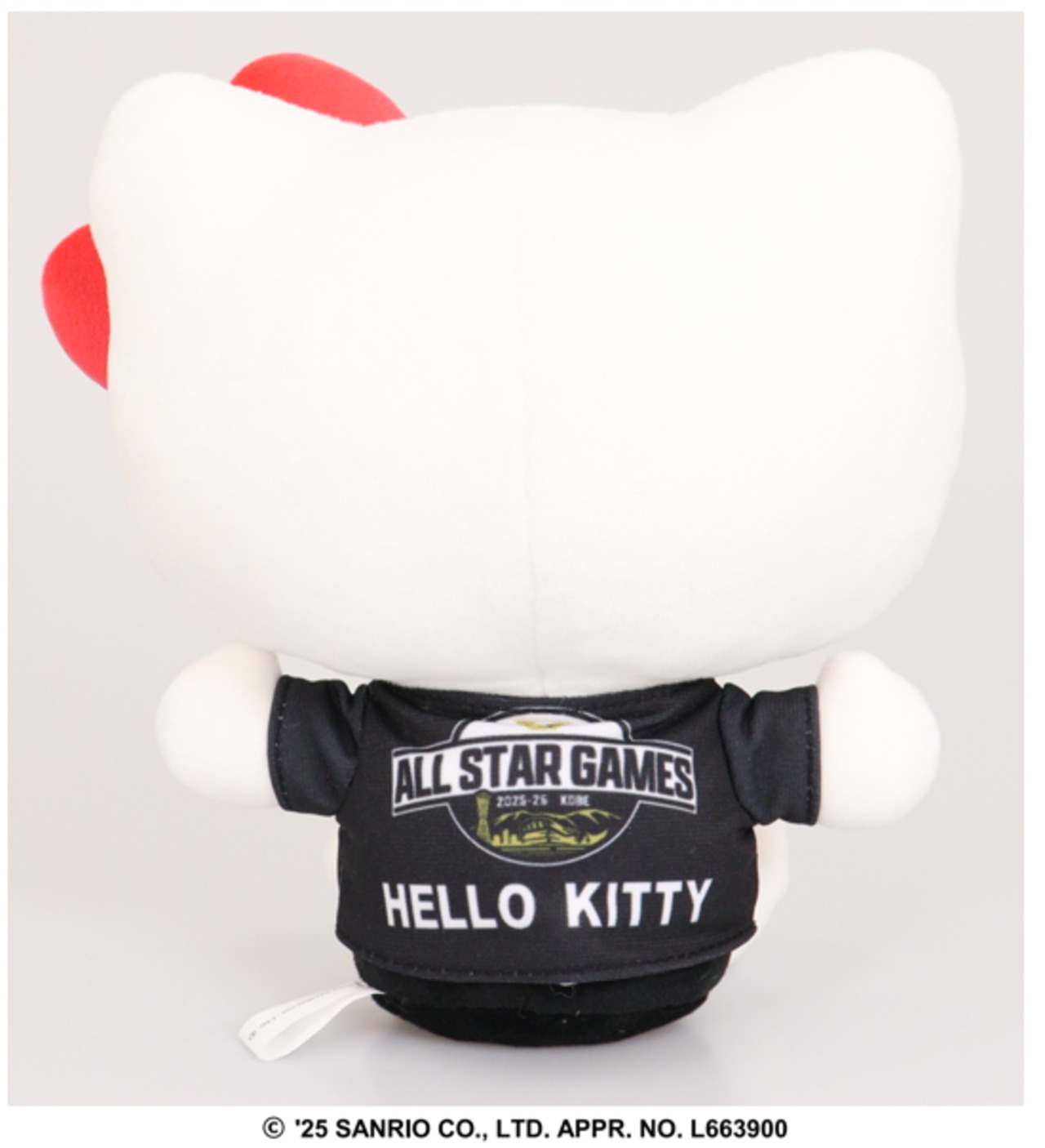 ハローキティがSV.LEAGUE ALL STAR 2025-26のシャツを着たぬいぐるみになります。記念品として最適な商品です。